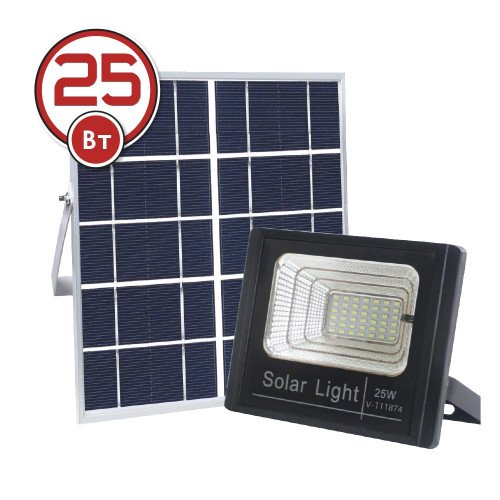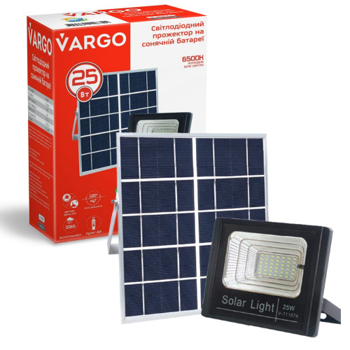 LED Прожектор VARGO на солнечной батарее 25W Световой поток: 1250lm Аккумулятор: 3.7V, 4Аh Время зарядки 8 часов Время работы: 12