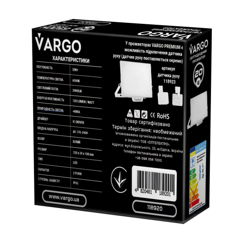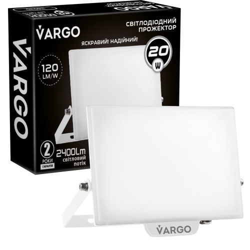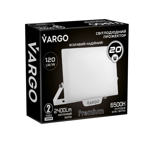 LED Прожектор VARGO Premium 20W, 2400lm, 120lm/w, IC Driver, 2 года гарантия, белый (118920), Качество