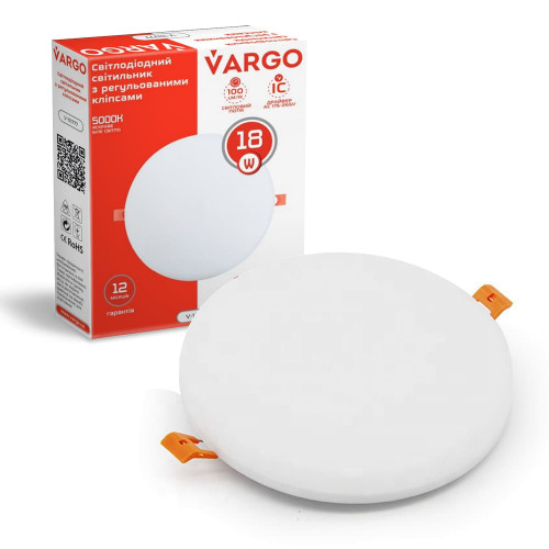 LED светильник VARGO круг 18W 4000K 1800lm с регулируемыми клипсами размер отв. 50-105mm, размер 120mm (V-111777), Качество