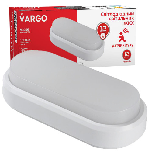 LED Светильник VARGO ЖКХ 12W овал IP54 1200lm с датчиком движения Размер: 178*85*55мм (115715), Качество