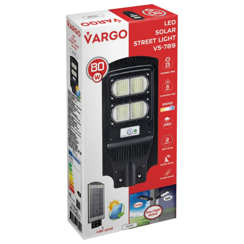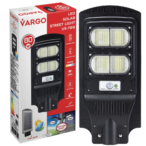 LED уличный светильник на солнечной батарее VARGO 80W 6500K, Аккумулятор: 3.2V, 12Аh Солнечная панель: 6V, 9W, с датчиком