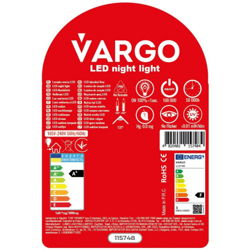 LED ночники VARGO – это идеальное решение для тех, кто ищет надежный и удобный ночник, что обеспечит комфортный и мягкий свет в любое время суток.