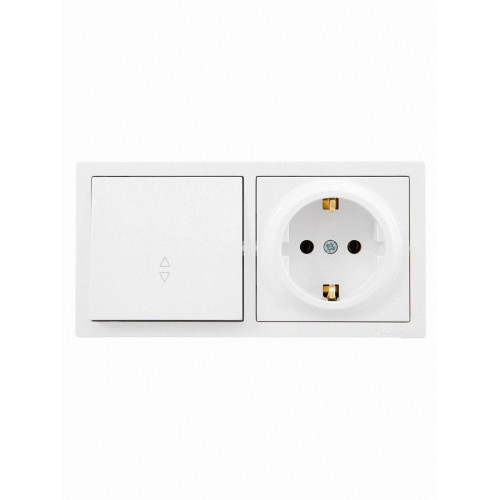 Проходной выключатель + накладная розетка с защитными шторками Lezard LETO 10A, 16A, 250V