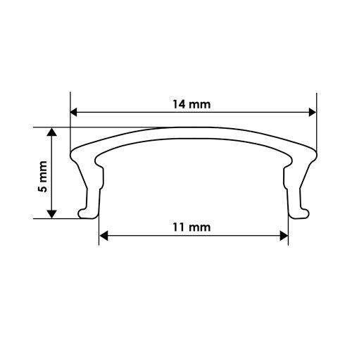 Этот рассеиватель для алюминиевого профиля имеет дугообразную форму. Габариты изделия – 5х14 мм. Корпус модели матовый изготовлен из поликарбоната.