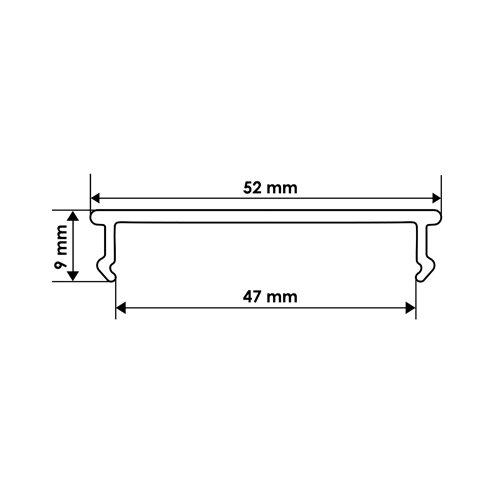 Данный рассеиватель для широкого алюминиевого профиля выполнен из матового пластика имеет размеры 9х52 мм. Форма изделия –ndash; уплощена.