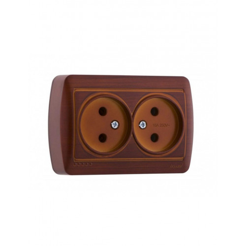 Розетка двойная без заземлением закрытый корпус LEZARD Demet античный махагон