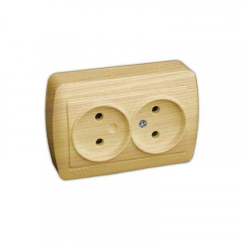 Розетка двойная без заземлением закрытый корпус LEZARD Demet клен
