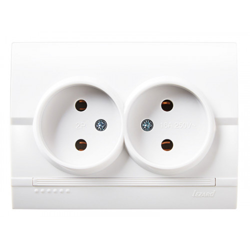 Розетка двойная без заземления белая ТМ LEZARD серии Deriy выполнена из негорючего, износостойкого к царапинам материала (PC) поликарбонат, который сохраняет свой блеск и первоначальный цвет на протяжение долгого времени, даже при попадании прямых солнечных лучей. Элементы, проводящие ток, состоят из фосфористой бронзы (94% Cu, 6% Sn), что обеспечивает слабый нагрев проводников. Контактная группа закрыта негорючей поликарбонатной накладкой, предотвращающей возникновение искры и выполнена в М-образной форме, что способствует более длительной эксплуатации. Контактный блок выполнен из прочного негорючего материала PBT, способного выдержать температуру 850 С и является ударостойким. Жесткий, нержавеющий каркас розетки из металла толщиной 1 мм обеспечит равномерное прилегание изделия к стене, а также имеет направляющие пазы для группового монтажа. что обеспечивает его удобную подводку.