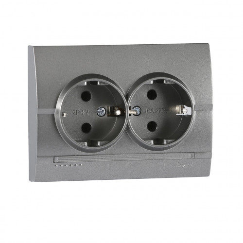 Розетка двойная с заземлением графит ТМ LEZARD серии Deriy выполнена из негорючего, износостойкого к царапинам материала (PC) поликарбонат, который сохраняет свой блеск и первоначальный цвет на протяжение долгого времени, даже при попадании прямых солнечных лучей. Элементы, проводящие ток, состоят из фосфористой бронзы (94% Cu, 6% Sn), что обеспечивает слабый нагрев проводников. Контактная группа закрыта негорючей поликарбонатной накладкой, предотвращающей возникновение искры и выполнена в М-образной форме, что способствует более длительной эксплуатации. Контактный блок выполнен из прочного негорючего материала PBT, способного выдержать температуру 850 С и является ударостойким. Жесткий, нержавеющий каркас розетки из металла толщиной 1 мм обеспечит равномерное прилегание изделия к стене, а также имеет направляющие пазы для группового монтажа. что обеспечивает его удобную подводку.