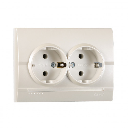 Розетка двойная с/з LEZARD Deriy жемчужно-белый перламутр