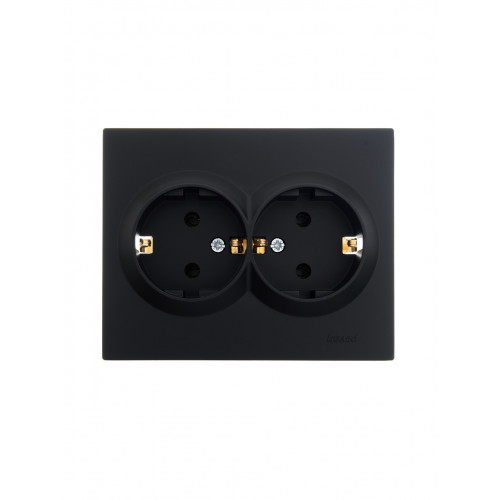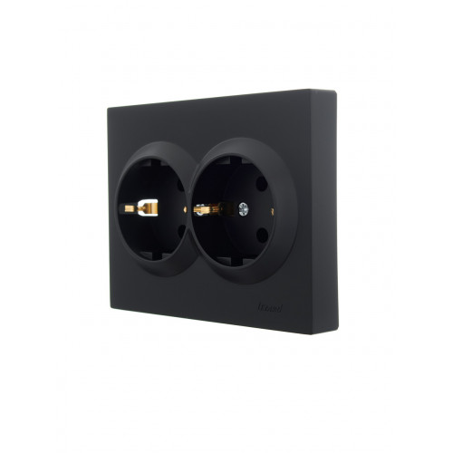 Розетка двойная с/з ПБТ LEZARD VESNA черная (10шт/120шт)