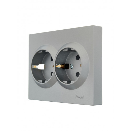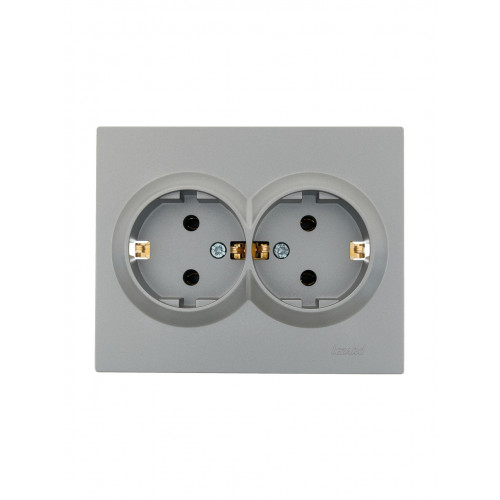 Розетка двойная с/з ПБТ LEZARD VESNA серая (10шт/120шт)