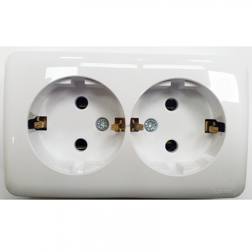 Розетка двойная с/з закрытый корпус (12шт/уп) Lezard белый