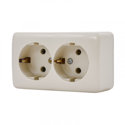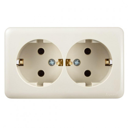 Розетка двойная с/з закрытый корпус (12шт/уп) Lezard крем