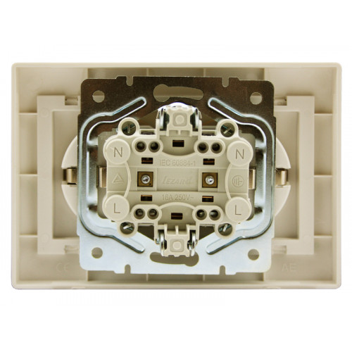 Розетка двойная с заземлением крем ТМ LEZARD серии Deriy выполнена из негорючего, износостойкого к царапинам материала (PC) поликарбонат, который сохраняет свой блеск и первоначальный цвет на протяжение долгого времени, даже при попадании прямых солнечных лучей. Элементы, проводящие ток, состоят из фосфористой бронзы (94% Cu, 6% Sn), что обеспечивает слабый нагрев проводников. Контактная группа закрыта негорючей поликарбонатной накладкой, предотвращающей возникновение искры и выполнена в М-образной форме, что способствует более длительной эксплуатации. Контактный блок выполнен из прочного негорючего материала PBT, способного выдержать температуру 850 С и является ударостойким. Жесткий, нержавеющий каркас розетки из металла толщиной 1 мм обеспечит равномерное прилегание изделия к стене, а также имеет направляющие пазы для группового монтажа. что обеспечивает его удобную подводку.
