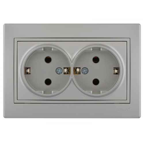 Розетка двойная с заземлением LEZARD Mira металлик серый