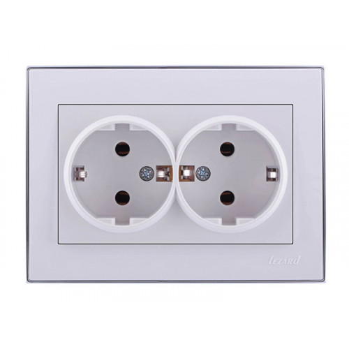 Розетка двойная с заземлением LEZARD Rain белый с хромом