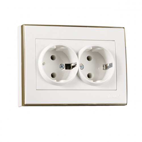 Розетка двойная с заземлением LEZARD Rain белый с золотом