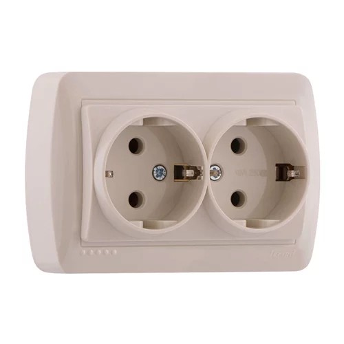 Розетка двойная с заземлением закрытый корпус LEZARD Demet крем