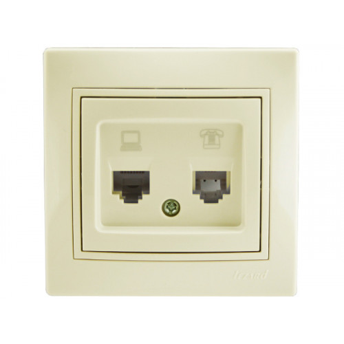 Розетка компьютерная + телефон (RJ45+RJ11) крем ТМ LEZARD серии Mira выполнена из негорючего, износостойкого к царапинам материала (PC) поликарбонат, который сохраняет свой блеск и первоначальный цвет на протяжение долгого времени, даже при попадании прямых солнечных лучей. Элементы, проводящие ток, состоят из фосфористой бронзы (94% Cu, 6% Sn), что обеспечивает слабый нагрев проводников. Контактная группа закрыта негорючей поликарбонатной накладкой, предотвращающей возникновение искры. Контактный блок выполнен из прочного негорючего материала PBT, способного выдержать температуру 850 С и является ударостойким. Используются для подключения и передачи данных сети и подключения телефона к сети. Жесткий, нержавеющий каркас розетки из металла толщиной 1 мм обеспечит равномерное прилегание изделия к стене, а также имеет направляющие пазы для группового монтажа. что обеспечивает его удобную подводку.