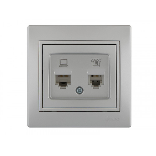 Розетка компьютер+телефон LEZARD Mira металлик серый