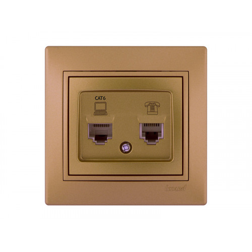 Розетка компьютер+телефон LEZARD Mira светло-коричневый перламутр
