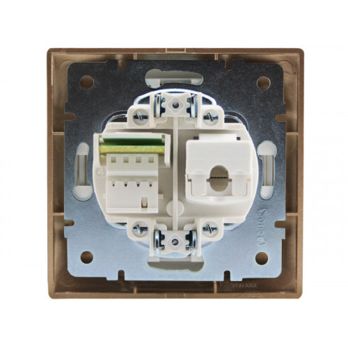 Розетка компьютерная + телефон (RJ45+RJ11) светло-коричневый перламутр ТМ LEZARD серии Mira выполнена из негорючего, износостойкого к царапинам материала (PC) поликарбонат, который сохраняет свой блеск и первоначальный цвет на протяжение долгого времени, даже при попадании прямых солнечных лучей. Элементы, проводящие ток, состоят из фосфористой бронзы (94% Cu, 6% Sn), что обеспечивает слабый нагрев проводников. Контактная группа закрыта негорючей поликарбонатной накладкой, предотвращающей возникновение искры. Контактный блок выполнен из прочного негорючего материала PBT, способного выдержать температуру 850 С и является ударостойким. Используются для подключения и передачи данных сети и подключения телефона к сети. Жесткий, нержавеющий каркас розетки из металла толщиной 1 мм обеспечит равномерное прилегание изделия к стене, а также имеет направляющие пазы для группового монтажа. что обеспечивает его удобную подводку