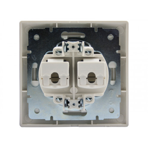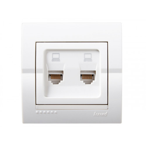 Розетка двойная компьютерная (RJ45 CAT5e) белая ТМ LEZARD серии Deriy выполнена из негорючего, износостойкого к царапинам материала (PC) поликарбонат, который сохраняет свой блеск и первоначальный цвет на протяжение долгого времени, даже при попадании прямых солнечных лучей. Элементы, проводящие ток, состоят из фосфористой бронзы (94% Cu, 6% Sn), что обеспечивает слабый нагрев проводников. Контактная группа закрыта негорючей поликарбонатной накладкой, предотвращающей возникновение искры. Контактный блок выполнен из прочного негорючего материала PBT, способного выдержать температуру 850 С и является ударостойким. Используются для подключения и передачи данных сети. Жесткий, нержавеющий каркас розетки из металла толщиной 1 мм обеспечит равномерное прилегание изделия к стене, а также имеет направляющие пазы для группового монтажа. что обеспечивает его удобную подводку.