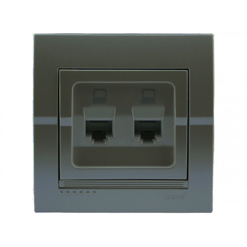 Розетка двойная компьютерная (RJ45 CAT5e) графит ТМ LEZARD серии Deriy выполнена из негорючего, износостойкого к царапинам материала (PC) поликарбонат, который сохраняет свой блеск и первоначальный цвет на протяжение долгого времени, даже при попадании прямых солнечных лучей. Элементы, проводящие ток, состоят из фосфористой бронзы (94% Cu, 6% Sn), что обеспечивает слабый нагрев проводников. Контактная группа закрыта негорючей поликарбонатной накладкой, предотвращающей возникновение искры. Контактный блок выполнен из прочного негорючего материала PBT, способного выдержать температуру 850 С и является ударостойким. Используются для подключения и передачи данных сети. Жесткий, нержавеющий каркас розетки из металла толщиной 1 мм обеспечит равномерное прилегание изделия к стене, а также имеет направляющие пазы для группового монтажа. что обеспечивает его удобную подводку.