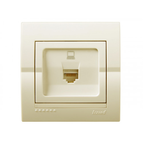 Розетка компьютерная (RJ45 CAT5e) крем ТМ LEZARD серии Deriy выполнена из негорючего, износостойкого к царапинам материала (PC) поликарбонат, который сохраняет свой блеск и первоначальный цвет на протяжение долгого времени, даже при попадании прямых солнечных лучей. Элементы, проводящие ток, состоят из фосфористой бронзы (94% Cu, 6% Sn), что обеспечивает слабый нагрев проводников. Контактная группа закрыта негорючей поликарбонатной накладкой, предотвращающей возникновение искры. Контактный блок выполнен из прочного негорючего материала PBT, способного выдержать температуру 850 С и является ударостойким. Используются для подключения и передачи данных сети. Жесткий, нержавеющий каркас розетки из металла толщиной 1 мм обеспечит равномерное прилегание изделия к стене, а также имеет направляющие пазы для группового монтажа. что обеспечивает его удобную подводку.