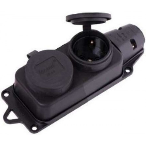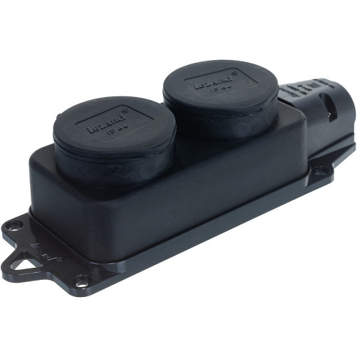 Розетка наружной установки двойная с заглушками ТМ LEZARD. Каучуковые изделия ТМ LEZARD предназначены для пользования в условиях и местах сильной загрязнённости, в которых присутствуют граничные показатели температуры, с высокой запылённостью и влажностью. Производитель дает рекомендации для использования на улице, для подключения различных электроприборов, электроинструментов, газонокосилок и т. д., для подключения силовых разъёмов на строительных площадках. Весь ассортимент каучуковых изделий ТМ LEZARD имеет степень защиты от пыли влаги IP44, внедрена абсолютно новая безопасная система заземления, все разъёмы оснащены крышками. Внешний корпус всех изделий ТМ LEZARD сделан из эластичного каучука. Все изделия отвечают стандарту IEC 60884-1.