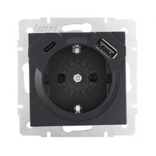 Розетка одинарная c/з з USB + TC черная LEZARD VESNA (10шт/120шт)