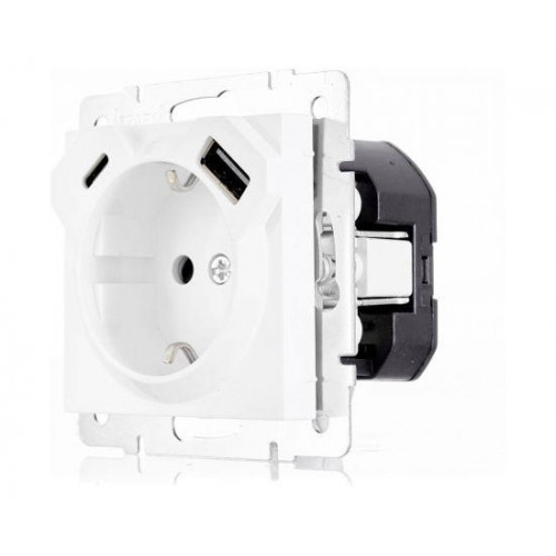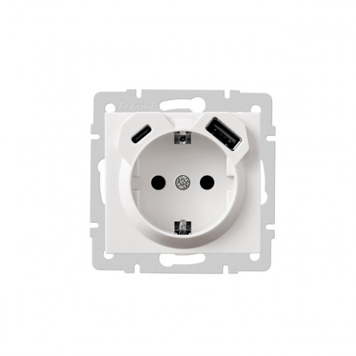 Розетка одинарная с/с с USB+TC белая RAIN LEZARD