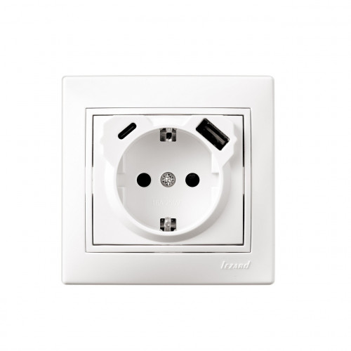 Розетка одинарная с/с с USB+TC жемчужно-белый перламутр RAIN LEZARD