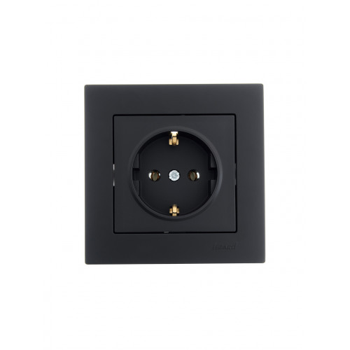 Розетка с/з ПБТ LEZARD VESNA черная (10шт/120шт) (без рамки)
