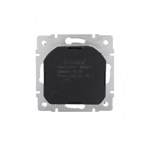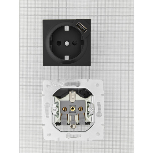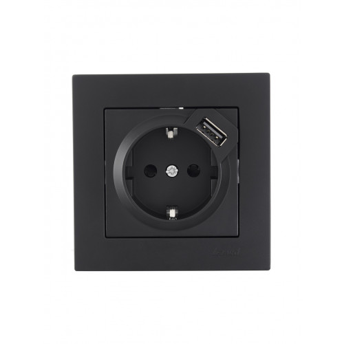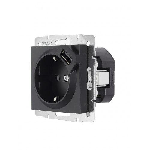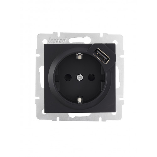 Розетка с/з + USB LEZARD VESNA черная (10шт/120шт) (без рамки)