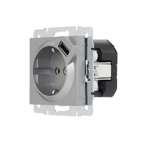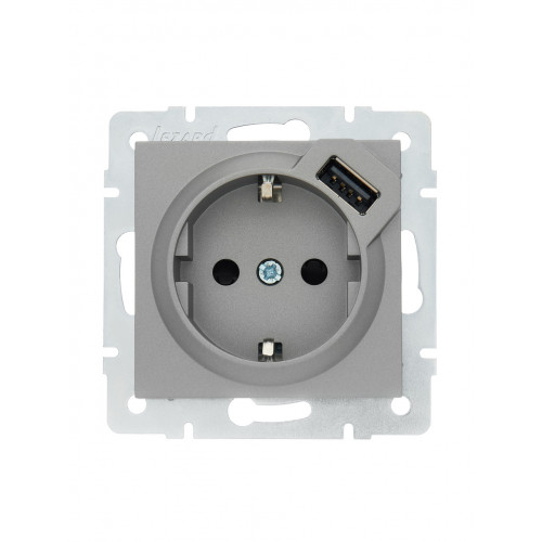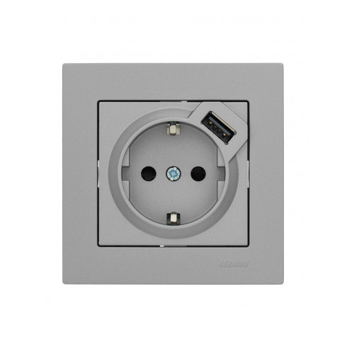 Розетка с/з + USB LEZARD VESNA серая (10шт/120шт) (без рамки)