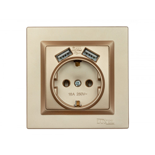 Розетка с заземлением и двумя USB портами 2.1A Luxel JAZZ (9630) Бронзовая, Качество