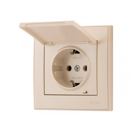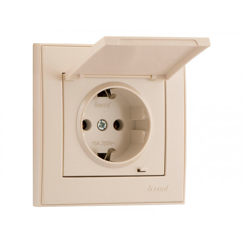 Розетка с заземлением и крышкой LEZARD Rain жемчужно-белый перламутр (без рамки)