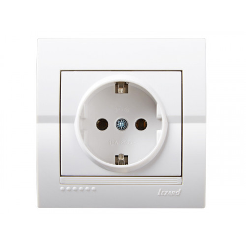 Розетка с заземлением белая ТМ LEZARD серии Deriy выполнена из негорючего, износостойкого к царапинам материала (PC) поликарбонат, который сохраняет свой блеск и первоначальный цвет на протяжение долгого времени, даже при попадании прямых солнечных лучей. Элементы, проводящие ток, состоят из фосфористой бронзы (94% Cu, 6% Sn), что обеспечивает слабый нагрев проводников. Контактная группа закрыта негорючей поликарбонатной накладкой, предотвращающей возникновение искры и выполнена в М-образной форме, что способствует более длительной эксплуатации. Контактный блок выполнен из прочного негорючего материала PBT, способного выдержать температуру 850 С и является ударостойким. Жесткий, нержавеющий каркас розетки из металла толщиной 1 мм обеспечит равномерное прилегание изделия к стене, а также имеет направляющие пазы для группового монтажа. что обеспечивает его удобную подводку.