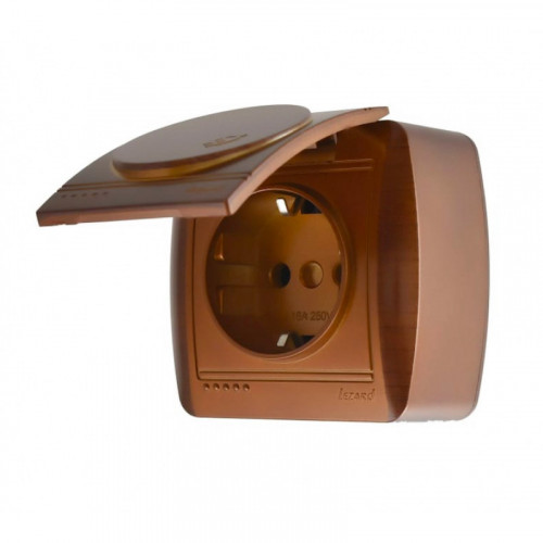 Розетка с заземлением с крышкой LEZARD Demet античный махагон