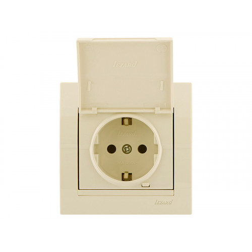 Розетка с заземлением с крышкой LEZARD Deriy крем