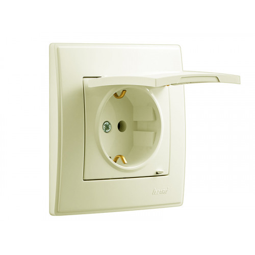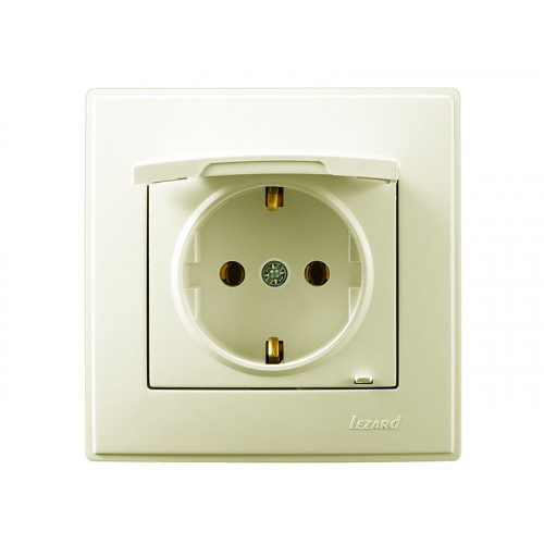 Розетка с заземлением с крышкой LEZARD Lesya крем