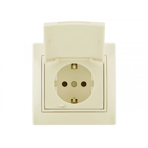 Розетка с заземлением с крышкой LEZARD Mira крем