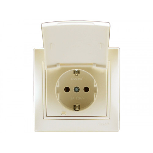 Розетка с заземлением с крышкой LEZARD Mira жемчужно-белый перламутр