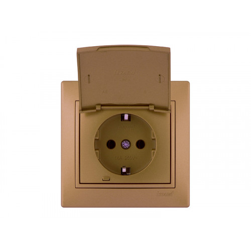 Розетка с заземлениям с крышкой LEZARD Mira светло-коричневый перламутр