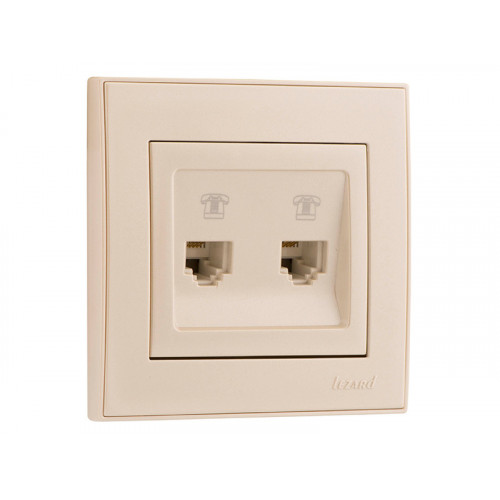 Розетка телефонна подвійна євро LEZARD Rain перлинно-білий перламутр