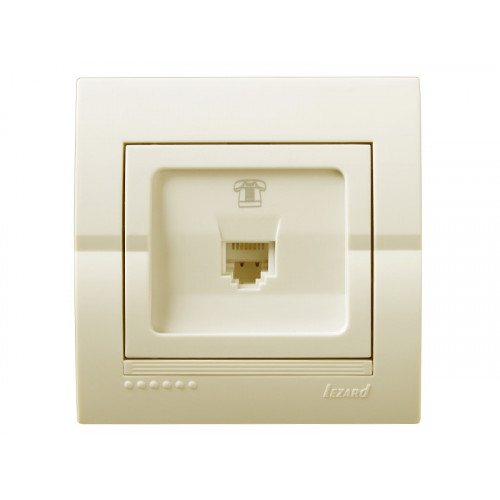 Розетка телефонная RJ11 (Евро) крем ТМ LEZARD серии Deriy выполнена из негорючего, износостойкого к царапинам материала (PC) поликарбонат, который сохраняет свой блеск и первоначальный цвет на протяжение долгого времени, даже при попадании прямых солнечных лучей. Элементы, проводящие ток, состоят из фосфористой бронзы (94% Cu, 6% Sn), что обеспечивает слабый нагрев проводников. Контактная группа закрыта негорючей поликарбонатной накладкой, предотвращающей возникновение искры. Контактный блок выполнен из прочного негорючего материала PBT, способного выдержать температуру 850 С и является ударостойким. Используются для подключения телефона к сети. Жесткий, нержавеющий каркас розетки из металла толщиной 1 мм обеспечит равномерное прилегание изделия к стене, а также имеет направляющие пазы для группового монтажа. что обеспечивает его удобную подводку.