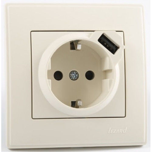 Розетка з/з+ USB зарядка LEZARD Lesya крем