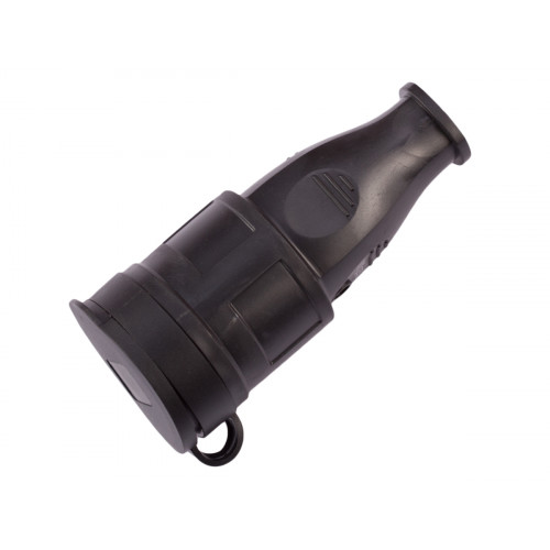 Штепсельное каучуковое гнездо с заземлением и крышкой. Изделие изготовлено из качественного каучука, благодаря чему можно не опасаться, что при падении розетка сломается, а также дает дополнительную защиту от влаги.